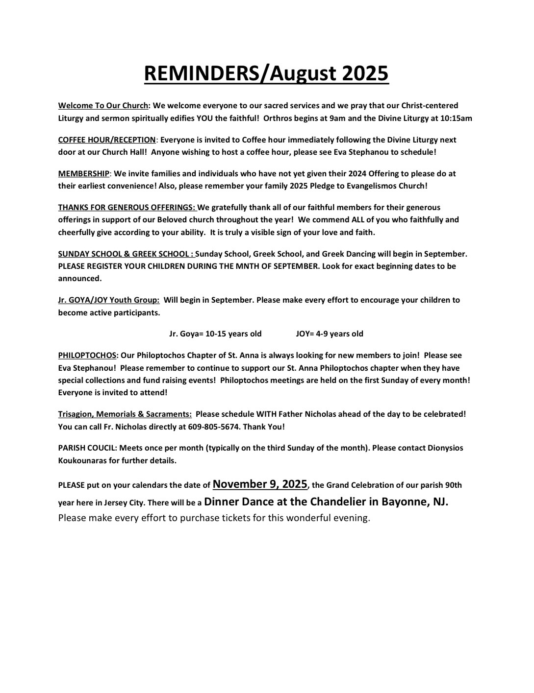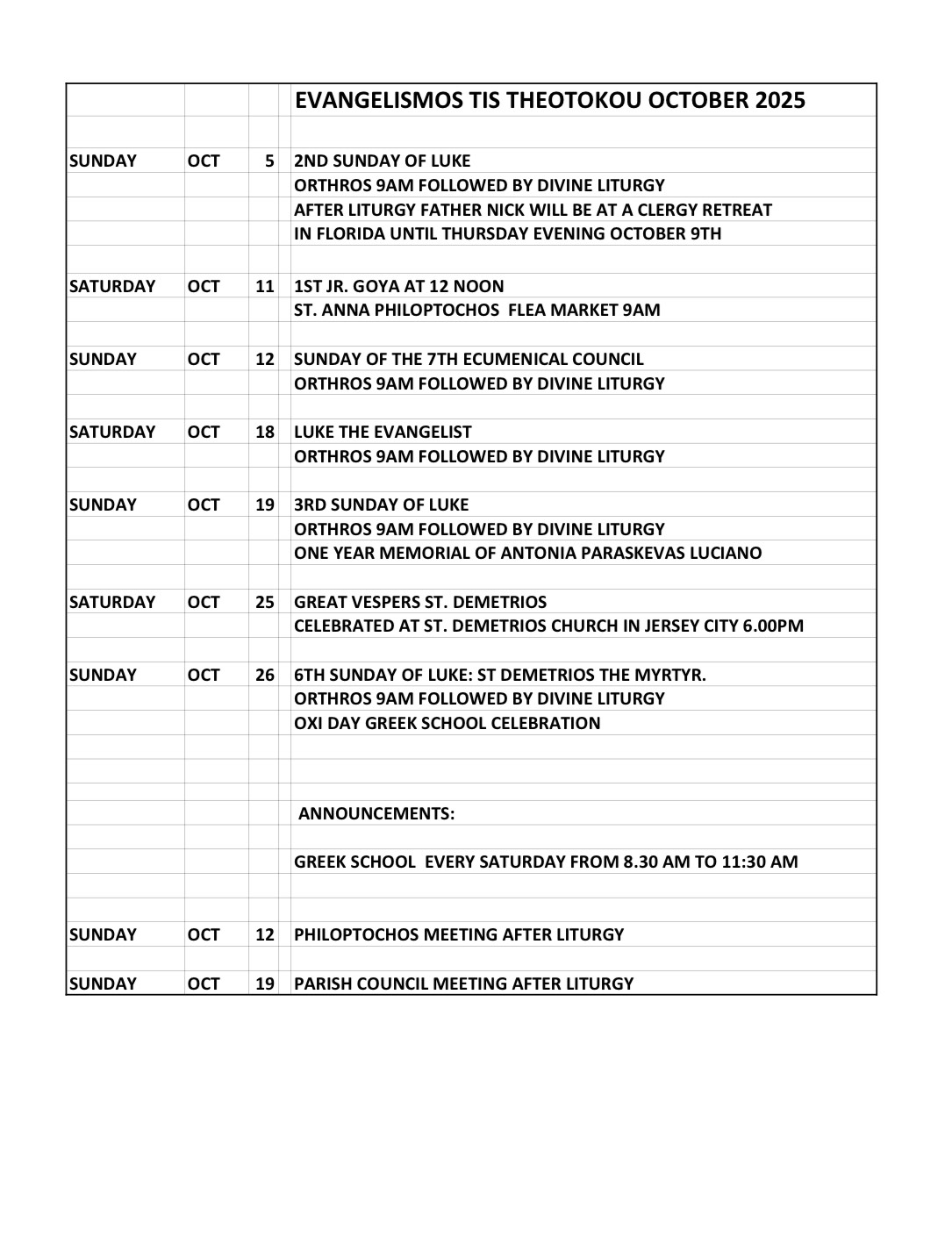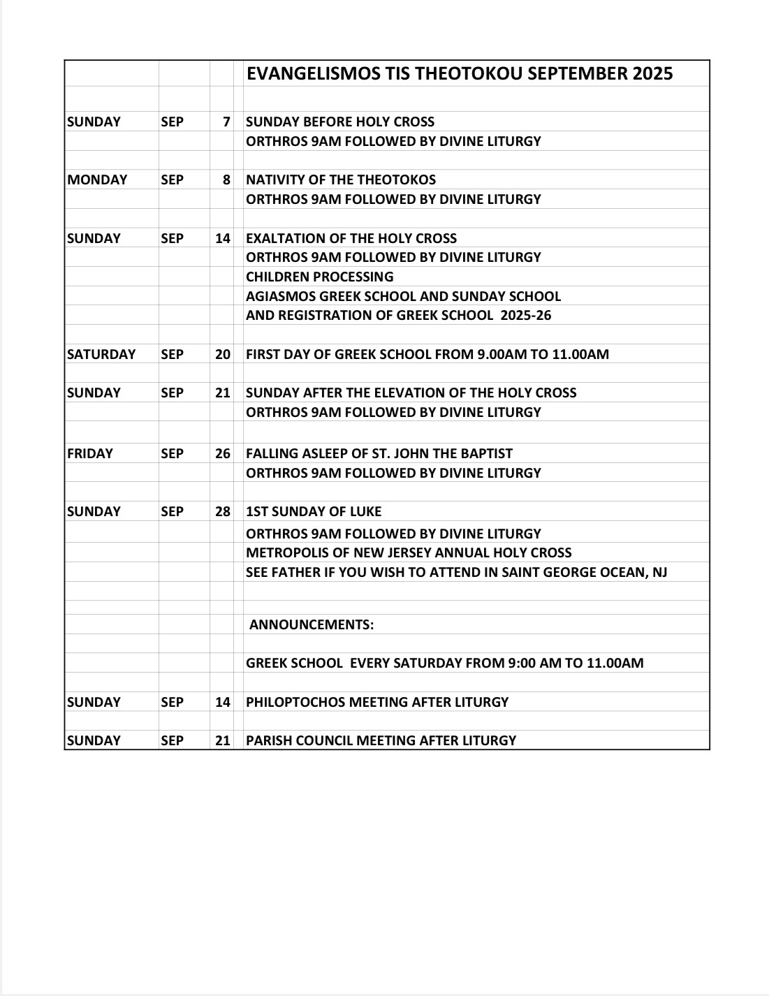 Click HERE for ANNOUNCEMENTS IN GREEK.