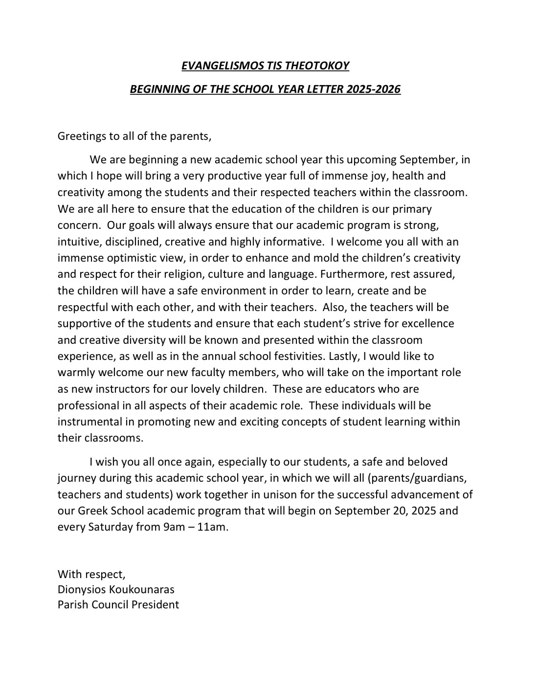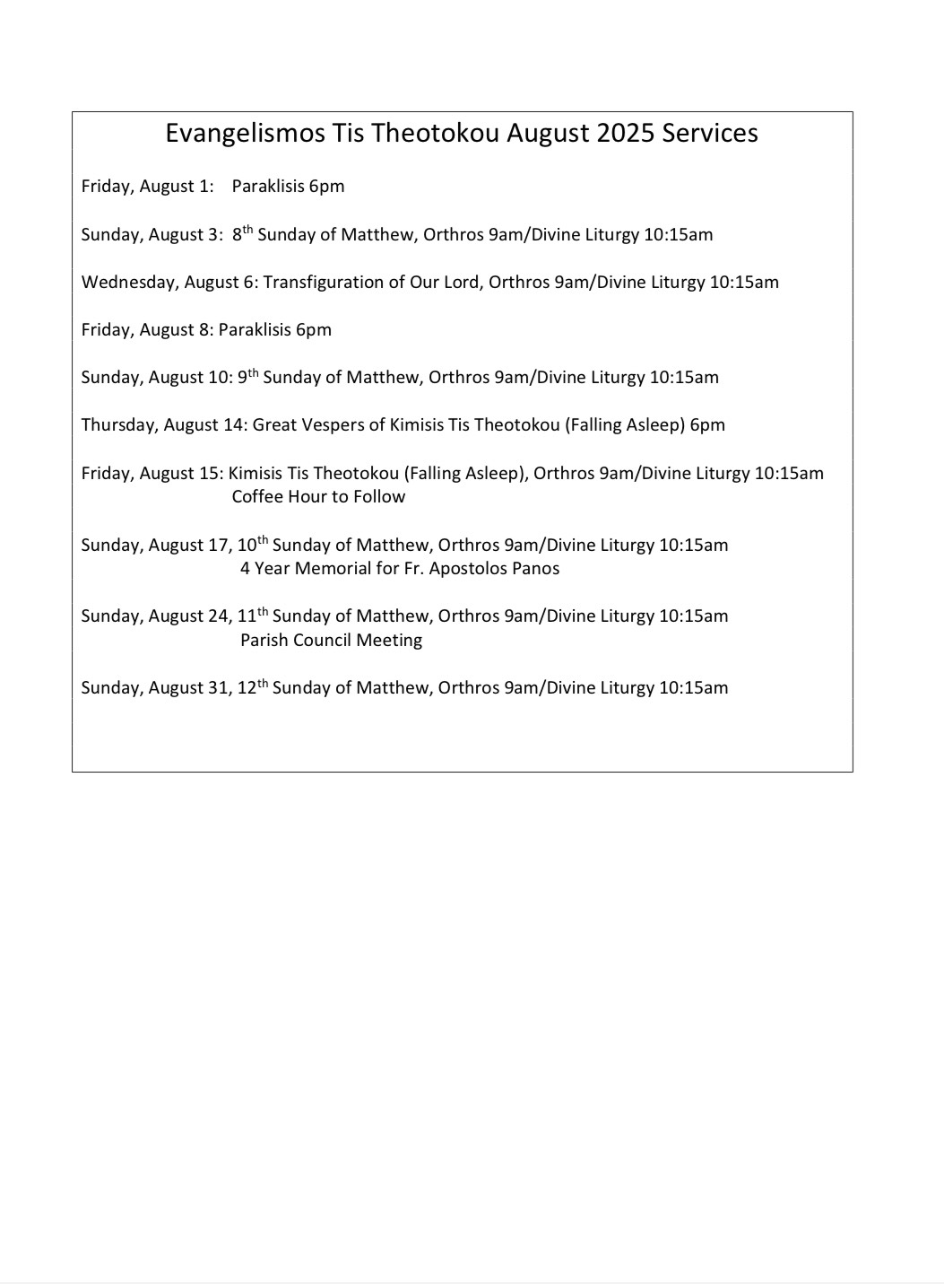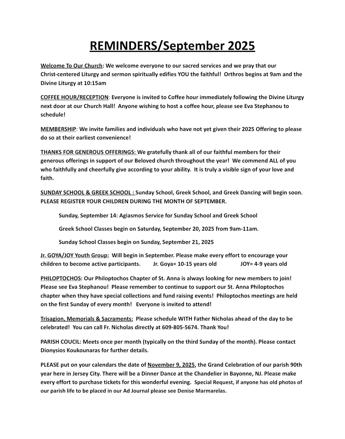 Click HERE for ANNOUNCEMENTS IN GREEK.